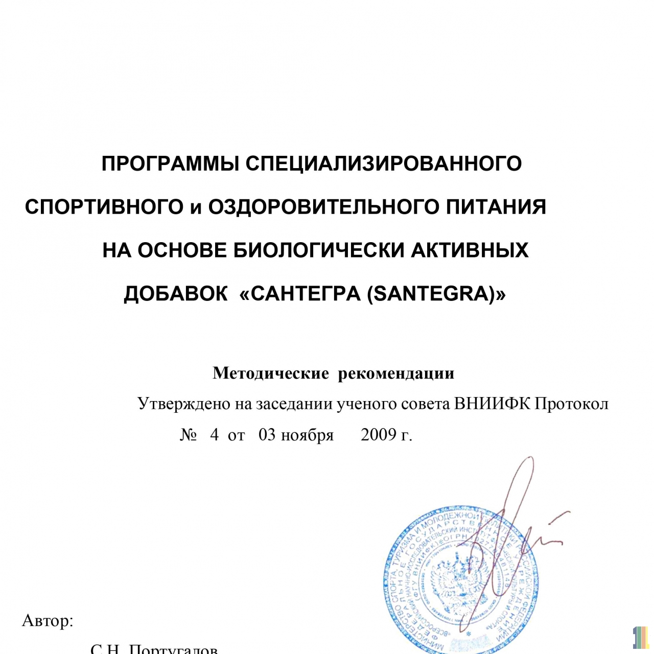 Программы специализированного спортивного и оздоровительного питания на основе биологически активных добавок "САНТЕГРА (SANTEGRA)"