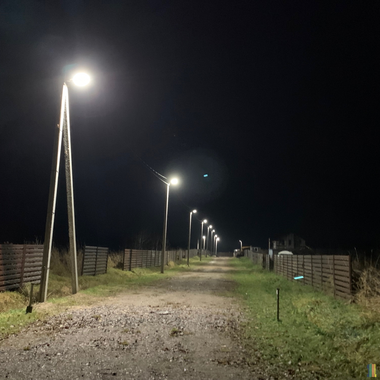Наружное освещение в коттеджном посёлке Вишнёвский берег приближает новогоднее настроение.